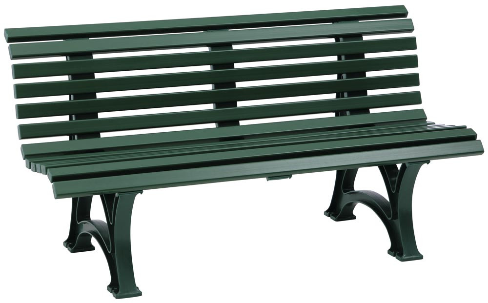 Parkbank aus Kunststoff, mit 2 Füßen, 6 Sitz- und 7 Lehnlatten 50x30 mm, Breite 1500 mm, grün