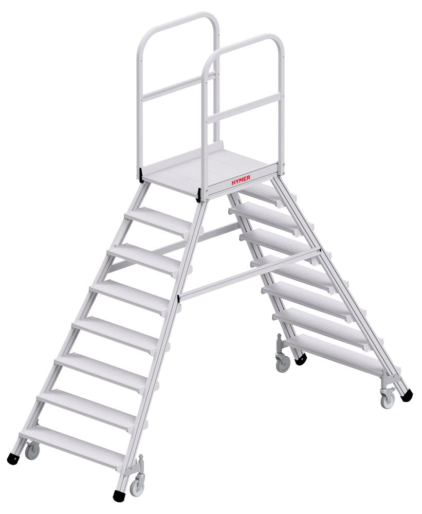 Podesttreppe fahrbar, beidseitig begehbar, Podestgröße 600x800 mm, 2x8 Stufen inkl. Plattform, Standhöhe 1950 mm, Gewicht 62,0 kg