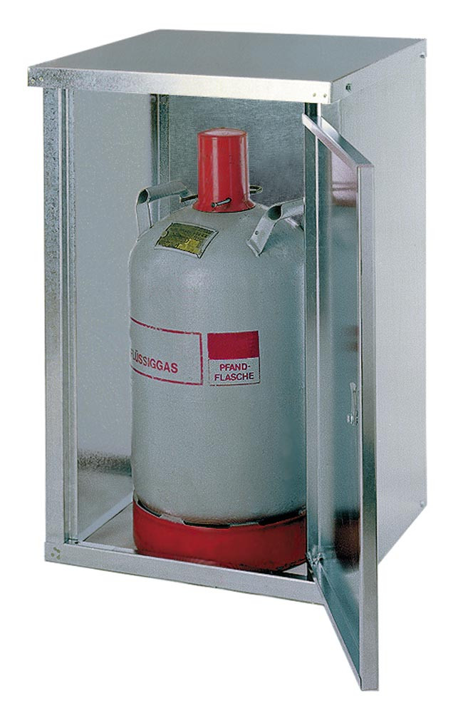 Propangasflaschen-Schrank, verzinkt, geschlossene Ausführung, mit 1 flügeliger Tür, für 1x11 kg Propangasflasche, BxTxH 460x400x750 mm