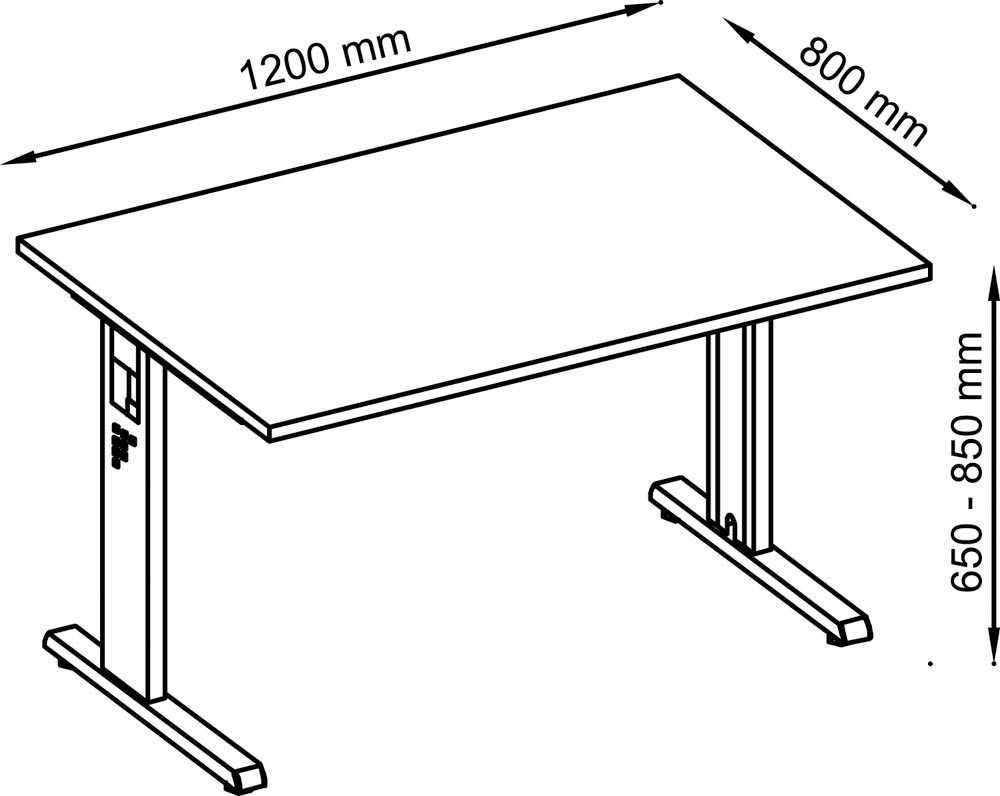Schreibtisch, BxTxH 1200x800x650-850 mm, höhenverstellbar, C-Fuß-Gestell, Platte ahorn