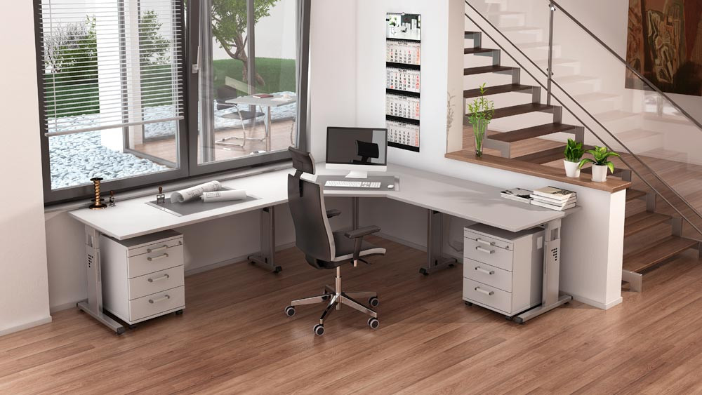 Schreibtisch, BxTxH 800x800x650-850 mm, höhenverstellbar, C-Fuß-Gestell, Platte weiß EP528121