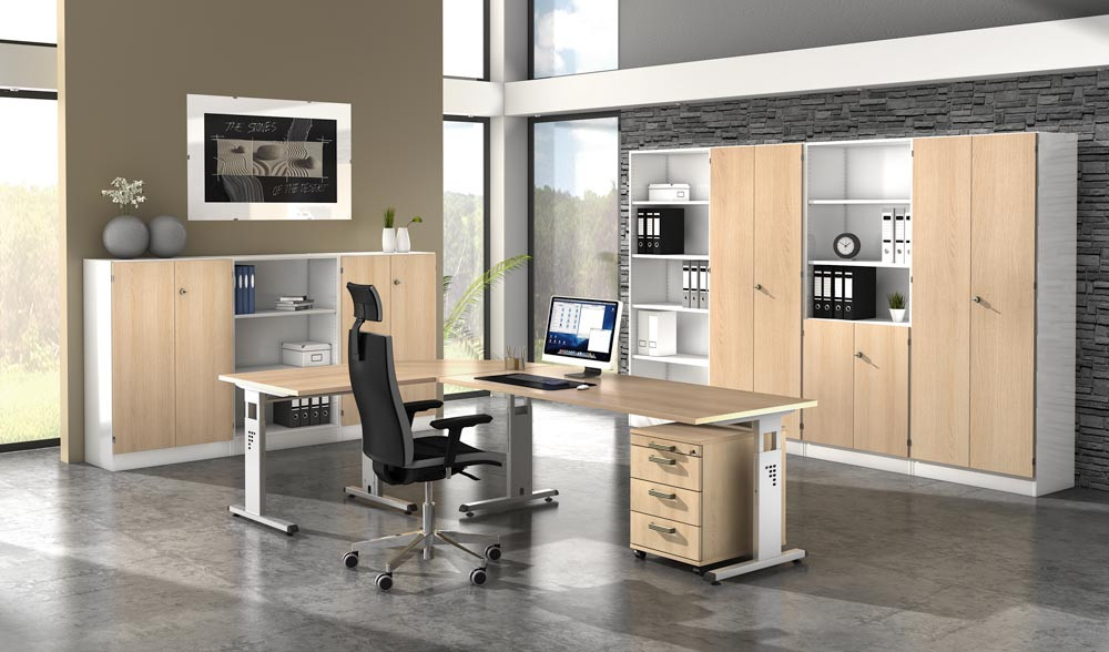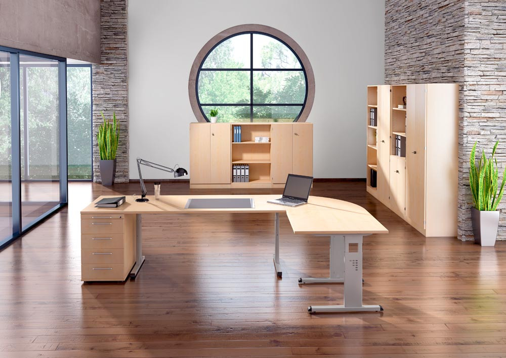 Schreibtisch, BxTxH 800x800x650-850 mm, höhenverstellbar, C-Fuß-Gestell, Platte buche EP528120