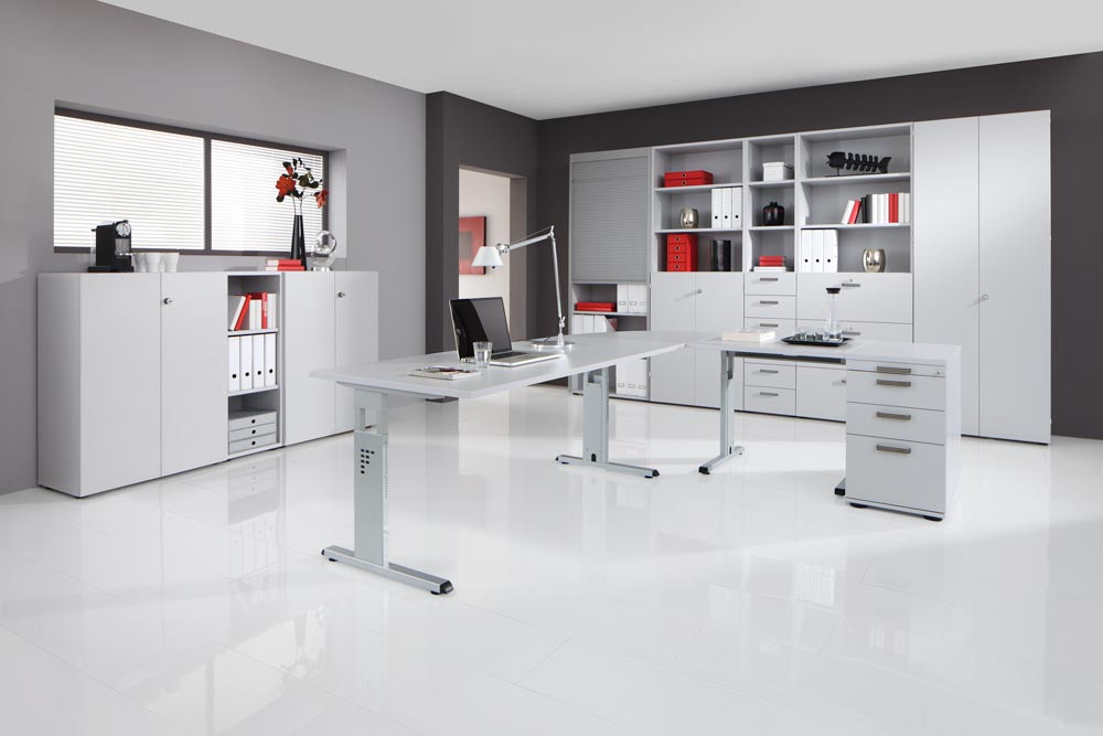 Schreibtisch, BxTxH 800x800x650-850 mm, höhenverstellbar, C-Fuß-Gestell, Platte lichtgrau EP528119