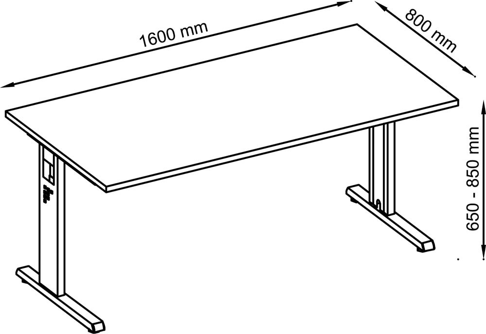 Schreibtisch, BxTxH 1600x800x650-850 mm, höhenverstellbar, C-Fuß-Gestell, Platte ahorn