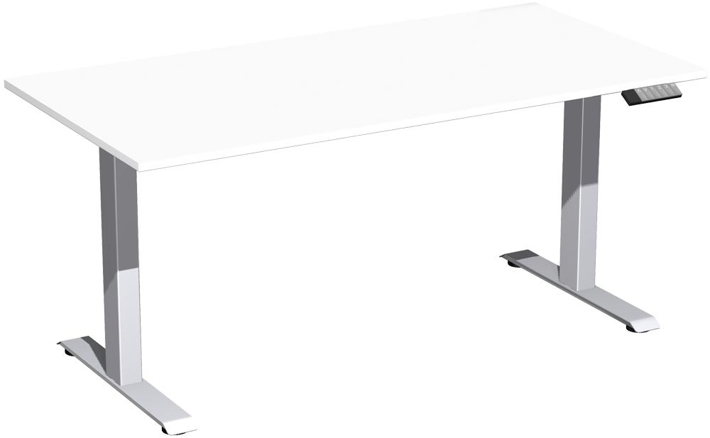 Schreibtisch, elektr. höhenverstellbar, BxTxH 1600x800x630-1280 mm, Melamin-Platte 25 mm, lichtgrau/silber EP561470