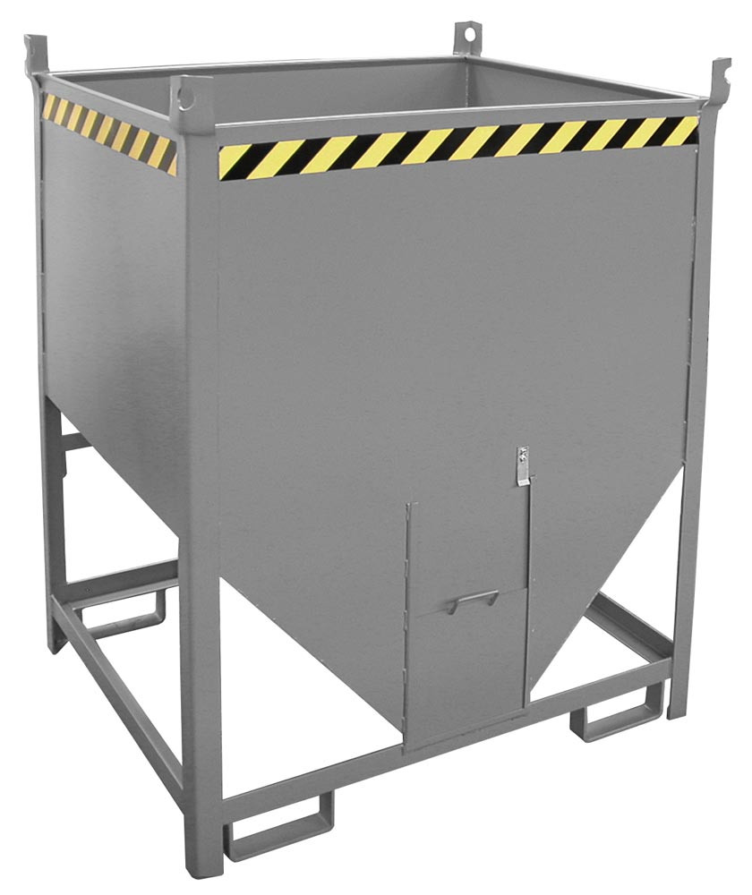 Silobehälter, LxBxH 1000x1200x1025 mm, Vol. 0,5 cbm, Traglast 750 kg, stirnseitiger Schieberverschluss, lackiert RAL 7005 mausgrau EP524995