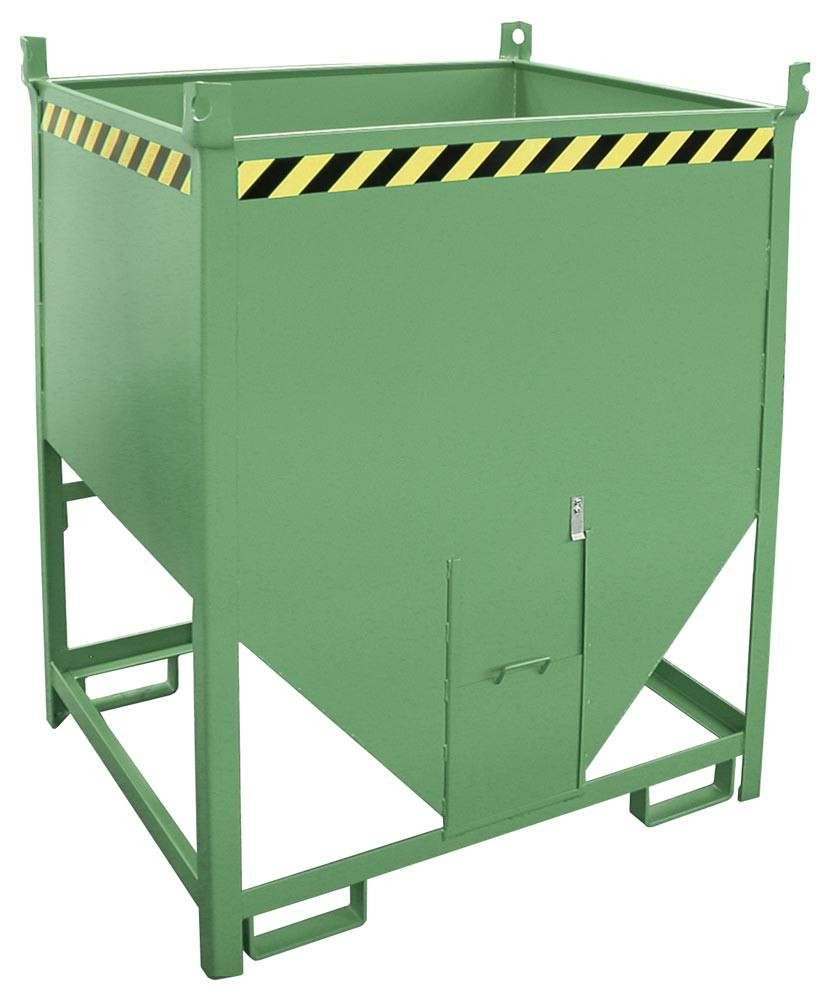 Silobehälter, LxBxH 1000x1200x1025 mm, Vol. 0,5 cbm, Traglast 750 kg, stirnseitiger Schieberverschluss, lackiert RAL 6011 resedagrün EP524994