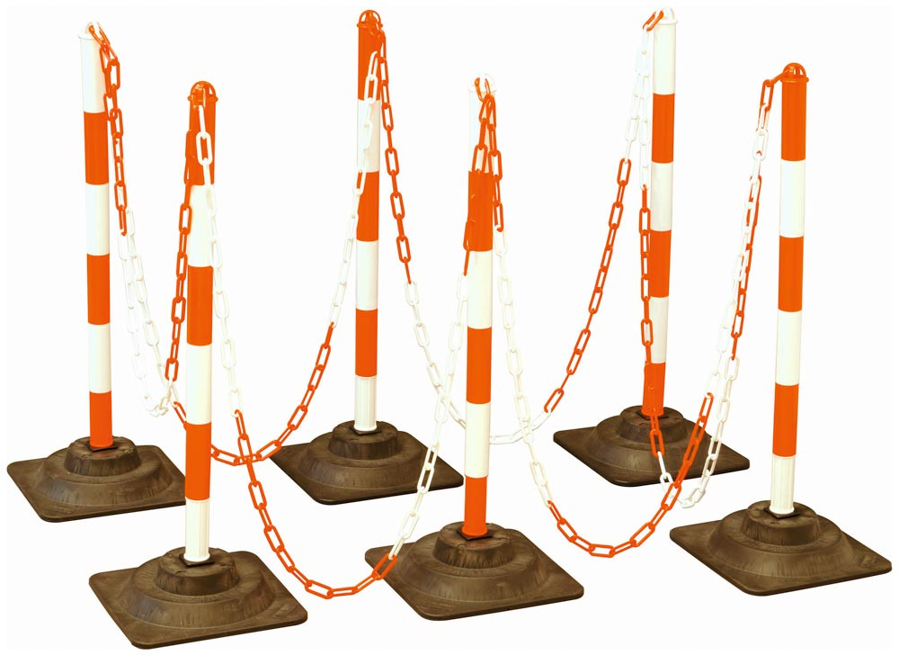 Sperrpfostenset PE/PVC rot/weiß mit Hartgummifuß D40xH860mm 6 Warnstäbe, 10 m Kette