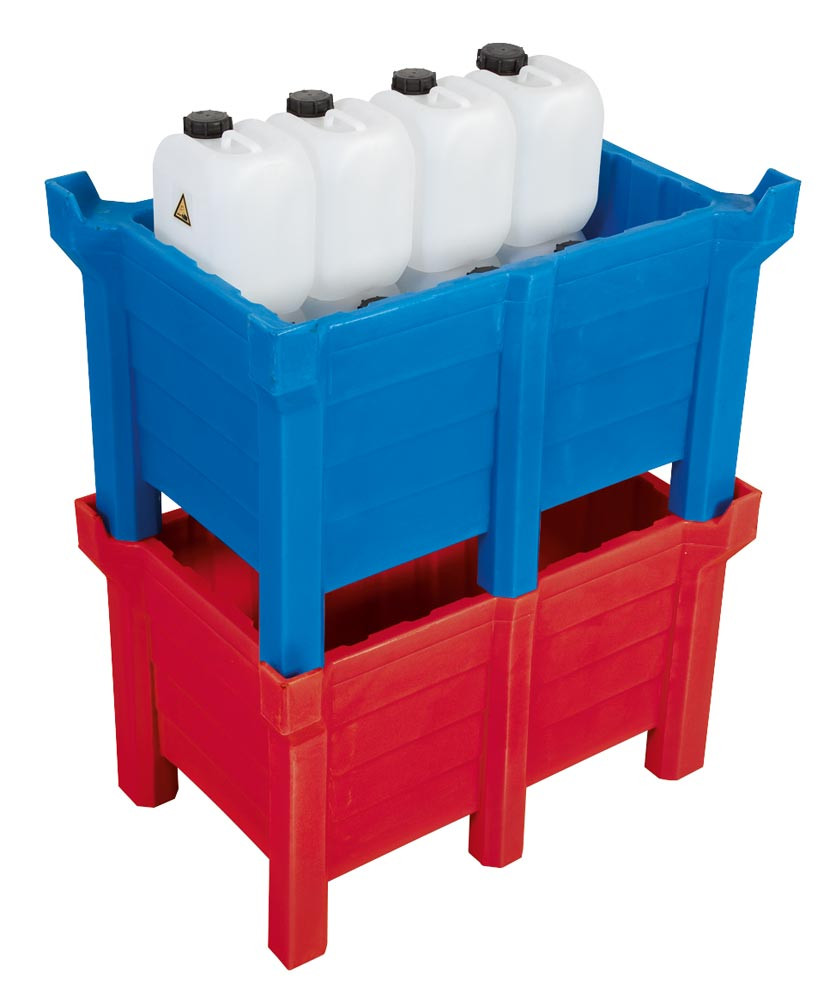 ∙ Stapelbare Transport- und Sammelbehälter aus umweltfreundlichem und widerstandsfähigem Polyethylen (PE) ∙ Geringes Eigengewicht ∙ Witterungsbeständig ∙ Leicht zu reinigen ∙ Platzsparendes Aufbewahren und Bereitstellen Ihrer Lagergüter und Wertstoffe ∙ Sicheres Aufbewahren von Gebinden mit Säuren, Laugen, Ölen, nicht brennbaren Reinigungslösungen, etc. ∙ Hohe Beständigkeit gegenüber vielen Säuren, Laugen und aggressiven Medien ∙ Problemlos auch mit Stahl-Stapelbehältern zu kombinieren ∙ Von allen Seiten leicht per Hubwagen oder Gabelstapler zu unterfahren