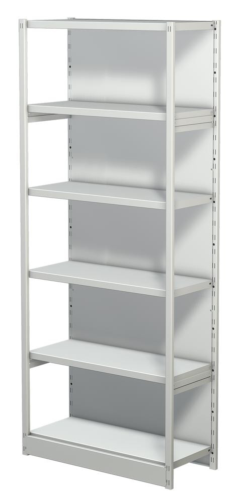 ∙ Optimale Raumausnutzung ∙ Fachböden 30 mm stark, im Raster von 59 mm höhenverstellbar ∙ Regalpfosten aus Kastenprofilen mit glatten Fronten ∙ Serienmäßig mit bodenbündiger Sockelblende ∙ Mit zusätzlichen Fachböden, Fachteilern, Seiten- und Trennstegen und Pendelhefterschienen individuell auszustatten ∙ Türen-Anbausätze, Seitenblenden und Zwischenwände ermöglichen die problemlose Integration von Schrankelementen ∙ Hochwertige Pulverbeschichtung in RAL 7035 lichtgrau