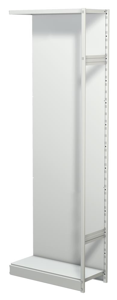 ∙ Optimale Raumausnutzung ∙ Fachböden 30 mm stark, im Raster von 59 mm höhenverstellbar ∙ Regalpfosten aus Kastenprofilen mit glatten Fronten ∙ Serienmäßig mit bodenbündiger Sockelblende ∙ Mit zusätzlichen Fachböden, Fachteilern, Seiten- und Trennstegen und Pendelhefterschienen individuell auszustatten ∙ Türen-Anbausätze, Seitenblenden und Zwischenwände ermöglichen die problemlose Integration von Schrankelementen ∙ Hochwertige Pulverbeschichtung in RAL 7035 lichtgrau