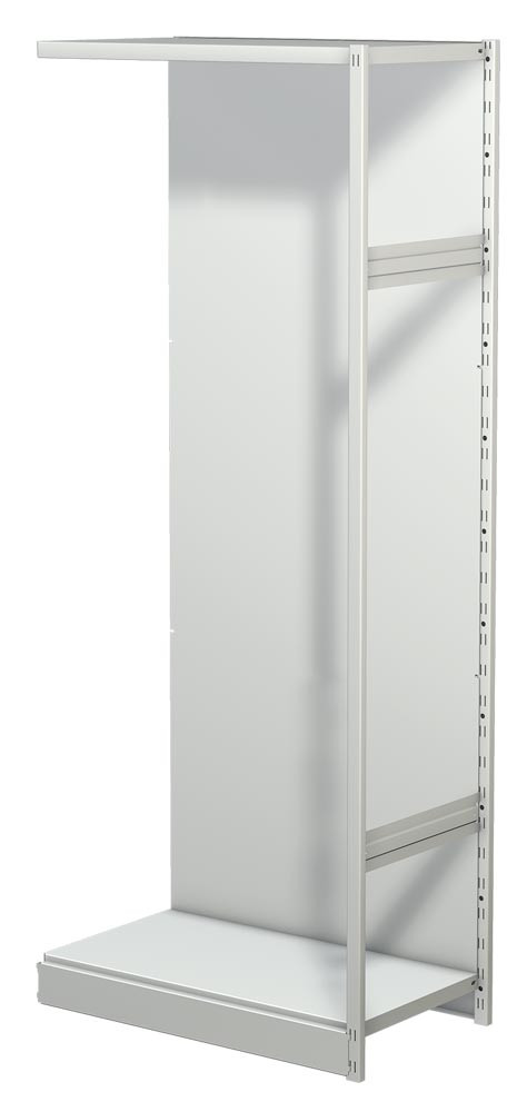 ∙ Optimale Raumausnutzung ∙ Fachböden 30 mm stark, im Raster von 59 mm höhenverstellbar ∙ Regalpfosten aus Kastenprofilen mit glatten Fronten ∙ Serienmäßig mit bodenbündiger Sockelblende ∙ Mit zusätzlichen Fachböden, Fachteilern, Seiten- und Trennstegen und Pendelhefterschienen individuell auszustatten ∙ Türen-Anbausätze, Seitenblenden und Zwischenwände ermöglichen die problemlose Integration von Schrankelementen ∙ Hochwertige Pulverbeschichtung in RAL 7035 lichtgrau