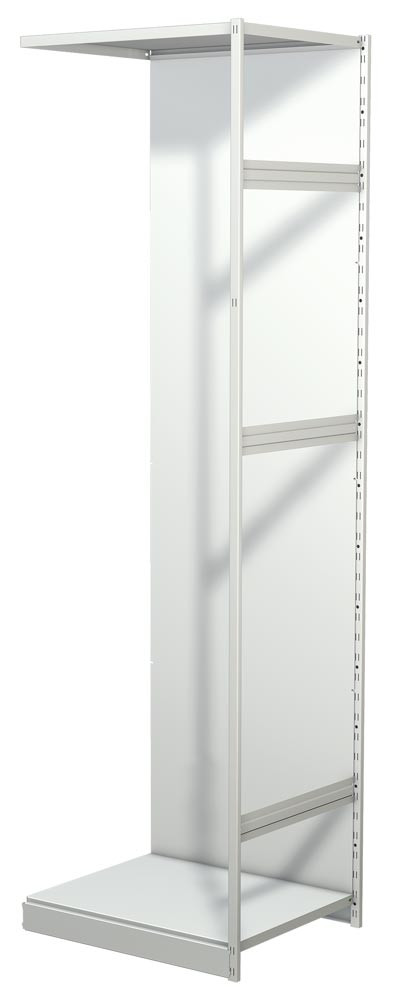 ∙ Optimale Raumausnutzung ∙ Fachböden 30 mm stark, im Raster von 59 mm höhenverstellbar ∙ Regalpfosten aus Kastenprofilen mit glatten Fronten ∙ Serienmäßig mit bodenbündiger Sockelblende ∙ Mit zusätzlichen Fachböden, Fachteilern, Seiten- und Trennstegen und Pendelhefterschienen individuell auszustatten ∙ Türen-Anbausätze, Seitenblenden und Zwischenwände ermöglichen die problemlose Integration von Schrankelementen ∙ Hochwertige Pulverbeschichtung in RAL 7035 lichtgrau