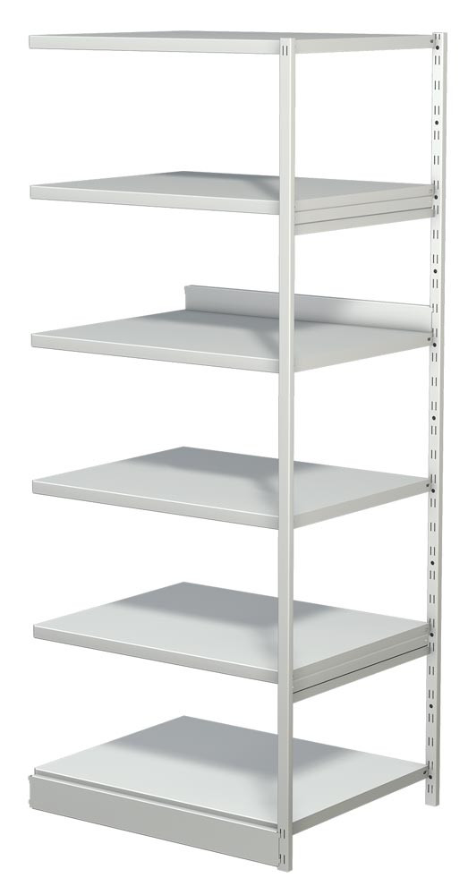 Steckregal ohne Rückwand, Anbaufeld, 6 Fachböden, 5 OH, BxTxH 960x300x1900 mm, lichtgrau EP518630