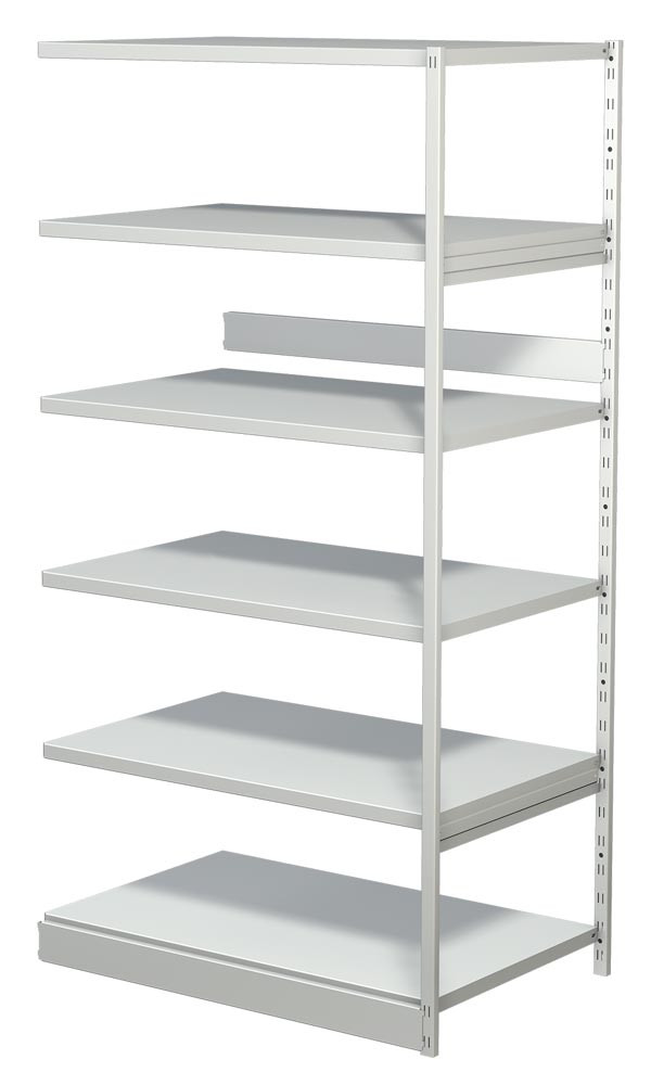 Steckregal ohne Rückwand, Anbaufeld, 6 Fachböden, 5 OH, BxTxH 960x300x1900 mm, lichtgrau EP518630