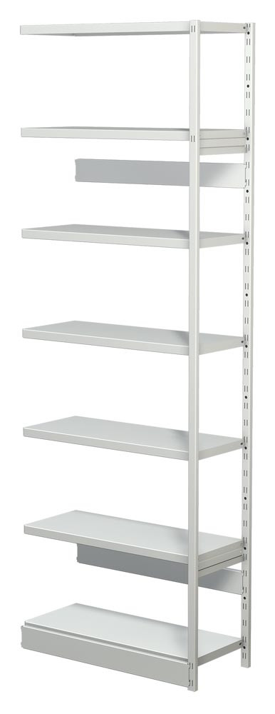 Steckregal ohne Rückwand, Anbaufeld, 7 Fachböden, 6 OH, BxTxH 750x300x2250 mm, lichtgrau