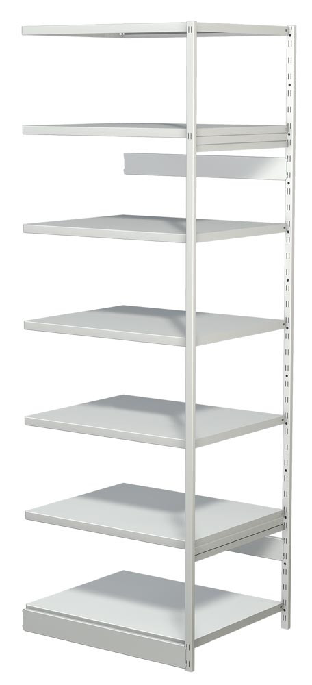 Steckregal ohne Rückwand, Anbaufeld, 7 Fachböden, 6 OH, BxTxH 750x300x2250 mm, lichtgrau EP518632