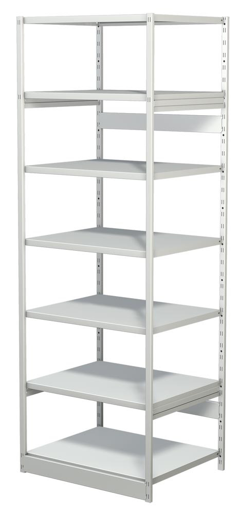 ∙ Optimale Raumausnutzung ∙ Fachböden 30 mm stark, im Raster von 59 mm höhenverstellbar ∙ Regalpfosten aus Kastenprofilen mit glatten Fronten ∙ Serienmäßig mit bodenbündiger Sockelblende ∙ Mit zusätzlichen Fachböden, Fachteilern, Seiten- und Trennstegen und Pendelhefterschienen individuell auszustatten ∙ Türen-Anbausätze, Seitenblenden und Zwischenwände ermöglichen die problemlose Integration von Schrankelementen ∙ Hochwertige Pulverbeschichtung in RAL 7035 lichtgrau
