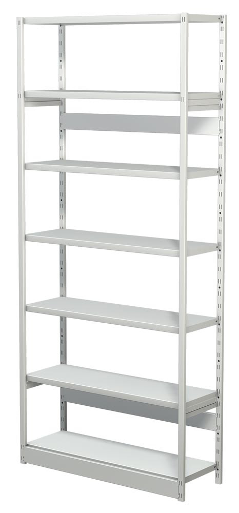 Steckregal ohne Rückwand, Grundfeld, 7 Fachböden, 6 OH, BxTxH 960x300x2250 mm, lichtgrau