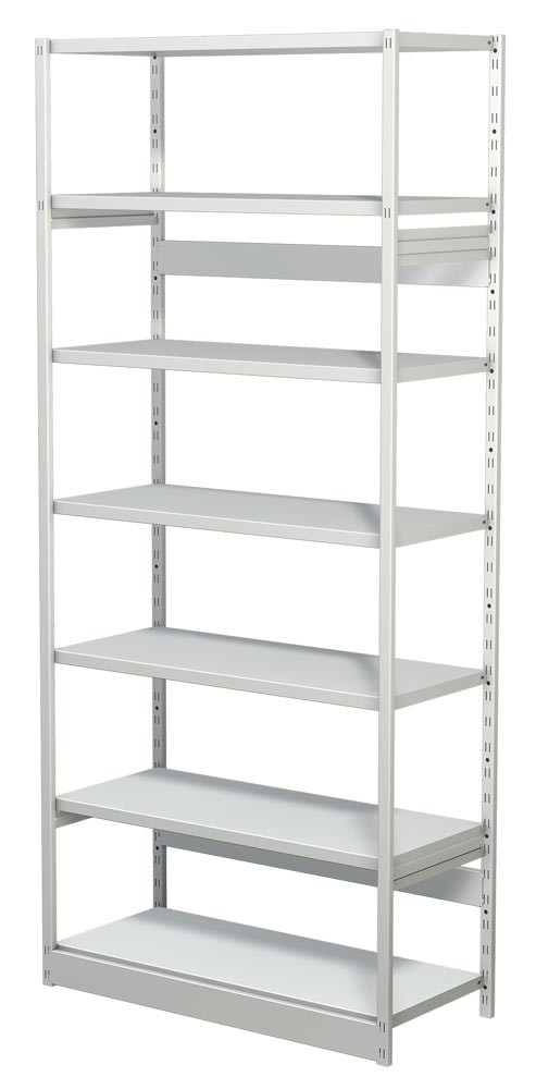 ∙ Optimale Raumausnutzung ∙ Fachböden 30 mm stark, im Raster von 59 mm höhenverstellbar ∙ Regalpfosten aus Kastenprofilen mit glatten Fronten ∙ Serienmäßig mit bodenbündiger Sockelblende ∙ Mit zusätzlichen Fachböden, Fachteilern, Seiten- und Trennstegen und Pendelhefterschienen individuell auszustatten ∙ Türen-Anbausätze, Seitenblenden und Zwischenwände ermöglichen die problemlose Integration von Schrankelementen ∙ Hochwertige Pulverbeschichtung in RAL 7035 lichtgrau