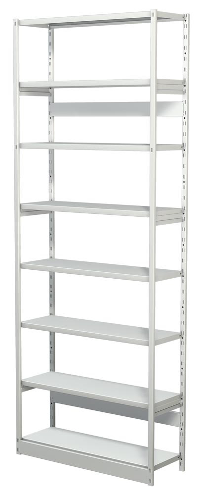 Steckregal ohne Rückwand, Grundfeld, 8 Fachböden, 7 OH, BxTxH 960x300x2600 mm, lichtgrau