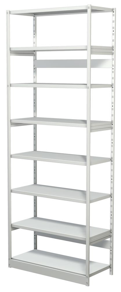 Steckregal ohne Rückwand, Grundfeld, 8 Fachböden, 7 OH, BxTxH 960x400x2600 mm, lichtgrau