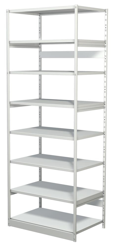 ∙ Optimale Raumausnutzung ∙ Fachböden 30 mm stark, im Raster von 59 mm höhenverstellbar ∙ Regalpfosten aus Kastenprofilen mit glatten Fronten ∙ Serienmäßig mit bodenbündiger Sockelblende ∙ Mit zusätzlichen Fachböden, Fachteilern, Seiten- und Trennstegen und Pendelhefterschienen individuell auszustatten ∙ Türen-Anbausätze, Seitenblenden und Zwischenwände ermöglichen die problemlose Integration von Schrankelementen ∙ Hochwertige Pulverbeschichtung in RAL 7035 lichtgrau