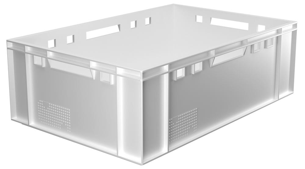 · Stapelbar, hohe Auflast · Seitliche Öffnungen zur Belüftung der Waren · Material PP · Garantiert lebensmittelecht · 100% recycelbar · Boden- und Seitenwände geschlossen · VE 2 Stück