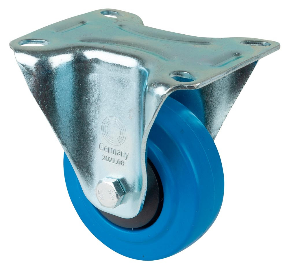 Transportgeräte-Lenkrolle, Elastik-Vollgummi blau, Durchm. 100 mm, Traglast 150 kg, Kugellager, Anschraubplatte, Fadenschutz EP560860
