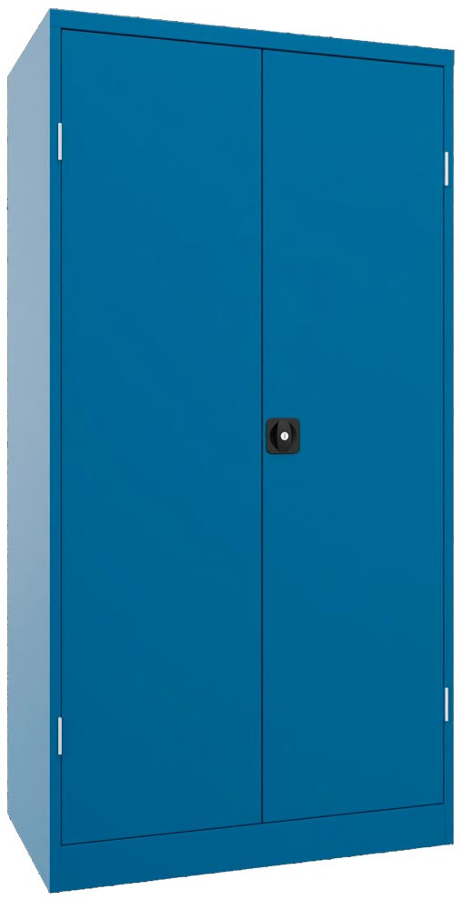 Vertikalauszugschrank, 2 Auszüge mit Lochplatten, Mitteltrennwand, 3 Böden, BxTxH 1000x600x1950 mm, RAL 5010 EP562239