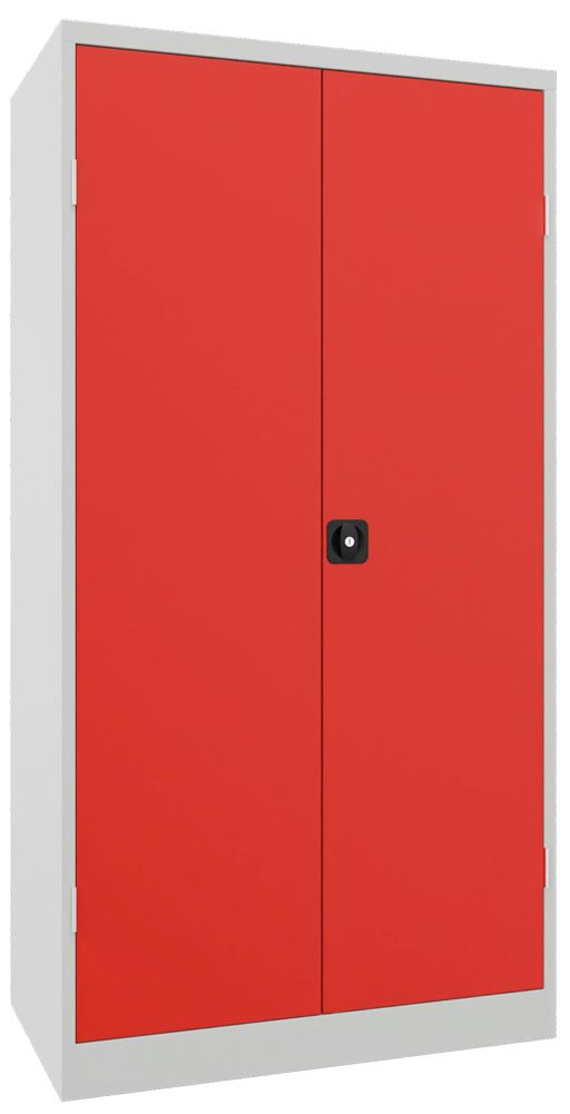 Vertikalauszugschrank, 2 Auszüge mit Lochplatten, Mitteltrennwand, 3 Böden, BxTxH 1000x600x1950 mm, RAL 5010 EP562239