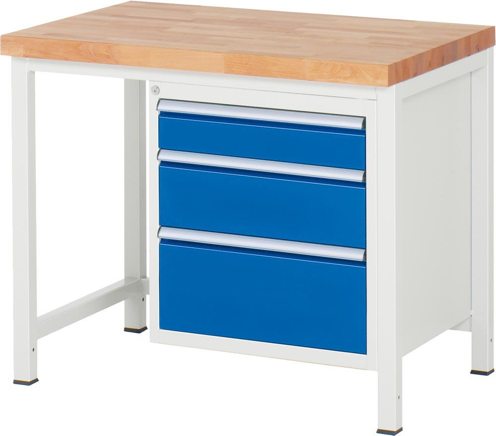 Werkbank, BxTxH 1000x700x840-1040 mm, 3 Schubladen 120/180/240 mm, Platte Buche 40 mm, RAL 7035/5010 EP562694